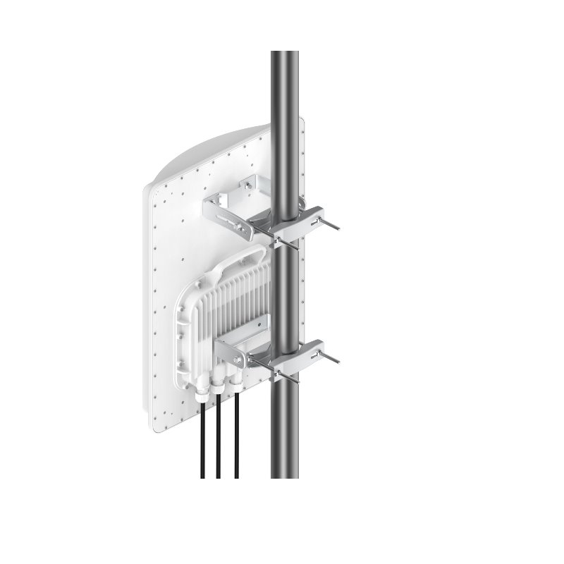 The ePMP 4500 delivers up to 4 Gbps and supports up to 120 subscriber modules. Featuring 8x8 MU-MIMO, the 5 GHz ePMP 4500 can transmit to four Force 400 SM’s at the same time. This effectively quadruples the capacity of 2x2 systems and in the process, increases link budgets by 6 dB with downlink beamforming. The ePMP 4500 has an integrated 90o 8x8 MU-MIMO sector antenna. With TDD synchronization, ePMP 4500 networks can scale to thousands of end users leveraging a small number of channels.