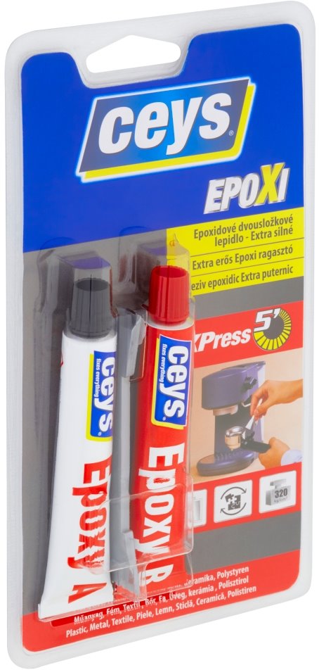 Epoxiceys rychle tvrdnoucí je epoxidové lepidlo s krátkou dobou tvrdnutí, čímž je vhodné i pro rychlé spoje. Kromě toho má výborné vyplňující schopnosti v případě nerovností lepených ploch. Spojuje prakticky všechny druhy materiálů s výjimkou polyethynelu, 1. polypropylenu, teflonu a silikonu. Lepí všechny materiály: kov, dřevo, porcelán, sklo, mramor, obklady, kůže, beton. Odolnost: teplotám od -60°C do + 65°C, zátěži do 320 kg/cm, většině organickým a anorganickým rozpouštědlům, stejně tak ranám a vibracím. Při teplotě 20°C ztvrdne během 5 - 10 minut, spoj je odolný tlaku za 1 hodinu, maximální odolnost dosáhne po 48 hodinách.