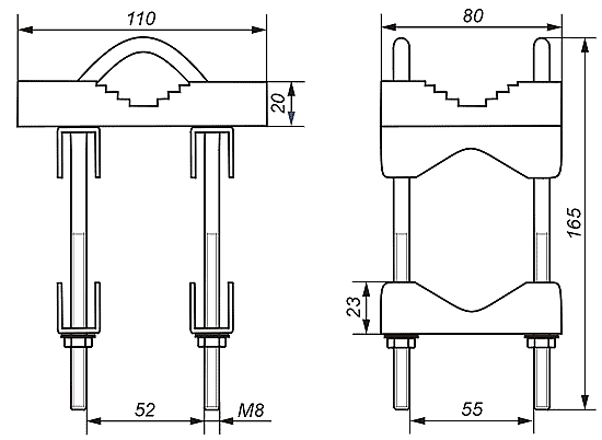 Objímka se zesíleným profilem. Objímka k připevnění stožárů pod pravým úhlem.