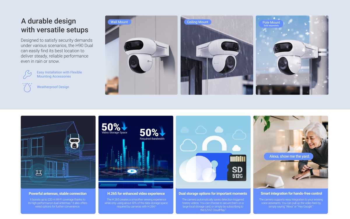 • Local and cloud storage - supports microSD cards up to 512 GB and EZVIZ CloudPlay storage (subscription required)