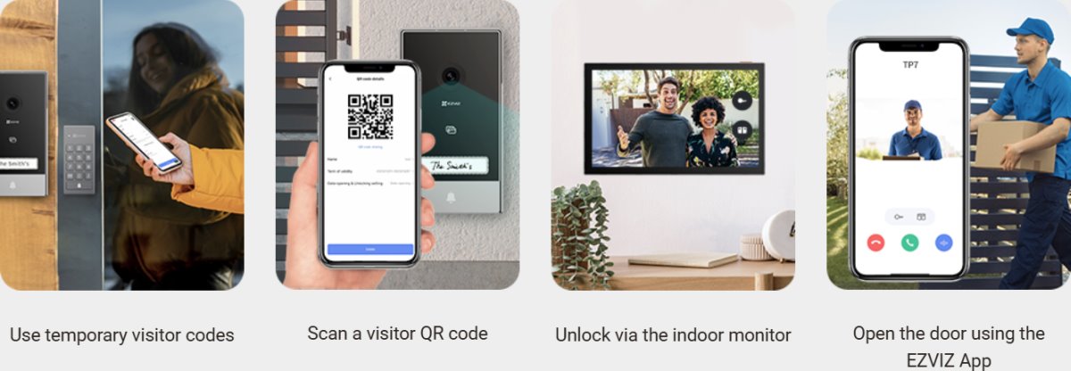 EZVIZ TP7 is a smart set for securing your access to your property. In the set you will find a station with a camera and a reader for RFID chips, as well as a wireless Bluetooth numeric keypad, a 7-inch touchscreen monitor for setting and monitoring the camera on the doorbell and 5 RFID chips. Door and gate locks can be connected through the station at the same time (includes 2 wire pins up to 10 meters). An SD card up to 512 GB can be inserted into the monitor to record video from the camera. The doorbell has a built-in microphone and speaker as well as the monitor. The application and monitor allows you to generate temporary access codes for example for visitors.