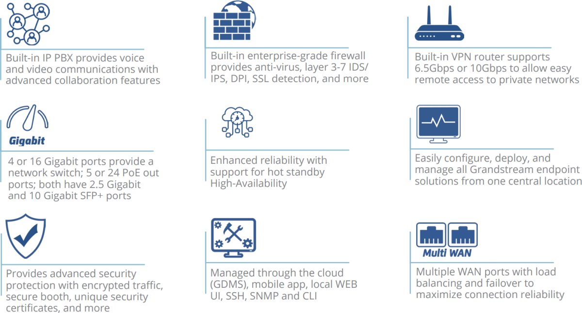 Grandstream GCC6020 all-in-one solution (VPN router, NGFW, PoE switch and IP PBX)