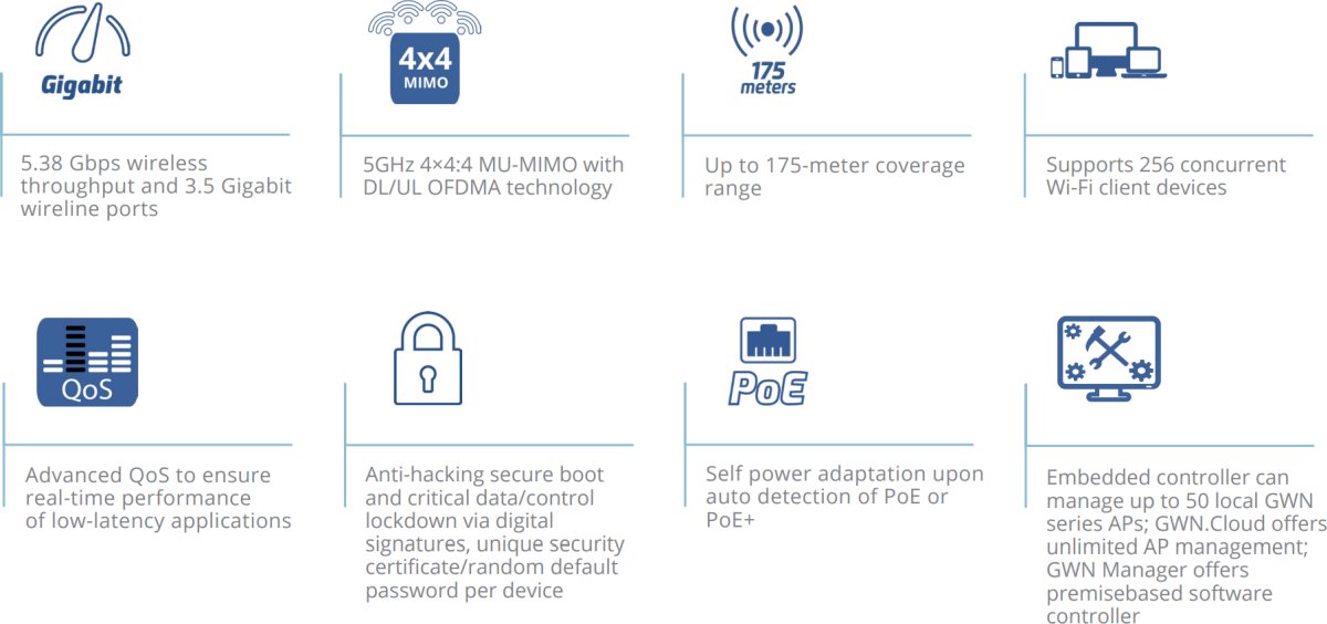 The GWN7662 is an enterprise-grade 802.11ax Wi-Fi 6 access point that allows businesses to build next generation Wi-Fi networks for high-density environments.