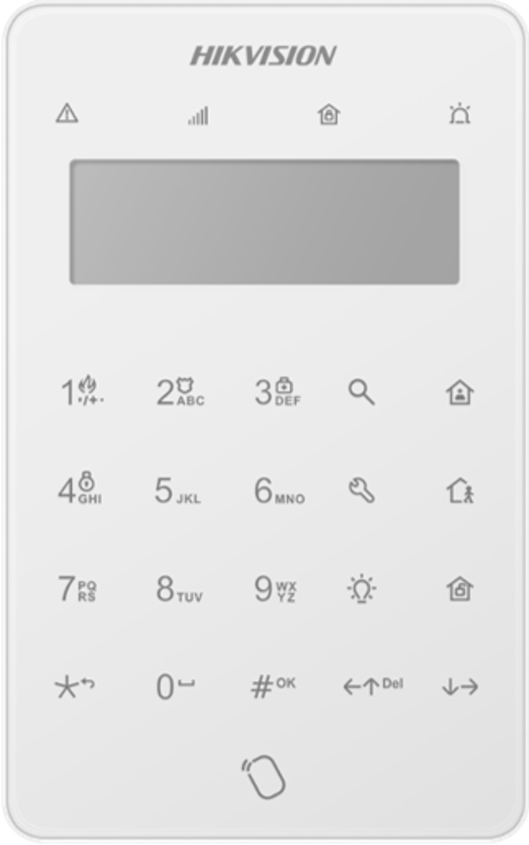 Hikvision DS-PK501LTM-HWE je moderní drátová klávesnice určená pro zabezpečovací systémy AX HYBRID PRO, která disponuje monochromatickým LCD displejem, kapacitními dotykovými tlačítky, včetně tlačítek požárního/panického/zdravotního poplachu. Podporuje 2 vstupní zóny, 1 reléový výstup (30VDC / 1A) a čtečku M1 karet pro autentizaci. Připojuje se pomocí RS-485 sběrnice. Zařízení splňuje evropskou normu pro zabezpečovací systémy střední úrovně rizika (např. domy či menší firmy) a je určeno pro vnitřní použití v běžných podmínkách prostředí.