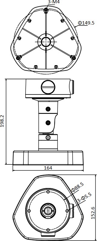 DS-1283ZJ je polohovatelný 3-osý montážní box určený ke schování veškeré kabeláže kamer. Držák je určen pro všechny modely panoramatických FISH-EYE kamer Hikvision: