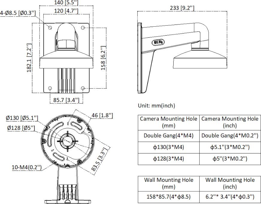 Hikvision DS-2200ZJ-WA-140 je konzolový držák bílé barvy s montáží na stěnu, který je určený pro dome kamery Hikvision modelové řady DS-2CD27xx