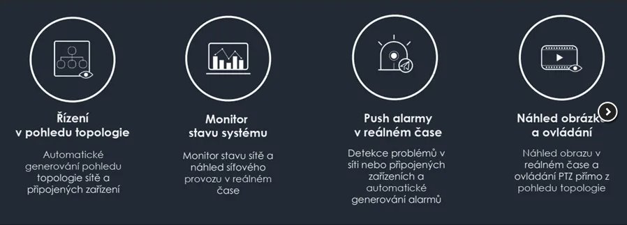 Hikvision DS-3E1506P-EI/M je smart switch, který umožňuje zobrazit topologii a stav sítě a přijímat alarmy zařízení v reálném čase, čímž usnadňuje správu a snižuje náklady na provoz a údržbu sítě.