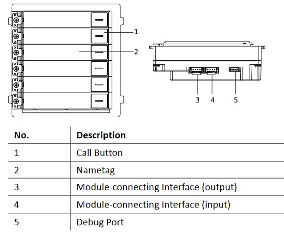Díky tomuto modulu rozšíříte svůj dveřní systém o dalších 6 tlačítek, díky kterým můžete zvonit jedním stiskem bez potřeby zadávání na numerické klávesnici. Vstupní napájení 12V DC z hlavního modulu je dostupné také na výstupu pro napájení dalších modulů. Spotřeba činí max. 2W. Pro venkovní použití je zařízení certifikováno IP65.