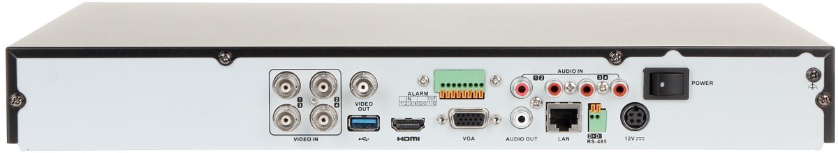 Uvnitř zařízení je místo pro 2 HDD s maximální kapacitou 10TB/kus. Do sítě se zařízení připojuje jedním LAN portem s rychlostí 10/100/1000Mbps a pro připojení periferií slouží celkově 2 USB porty. Pro obrazový výstup slouží VGA a HDMI výstup s 4K rozlišením (3840 x 2160). DVR je dále vybaveno alarmovými vstupy/výstupy 4/1, audiem a sériovým portem. Maximální spotřeba samotného rekordéru bez HDD je 15W.