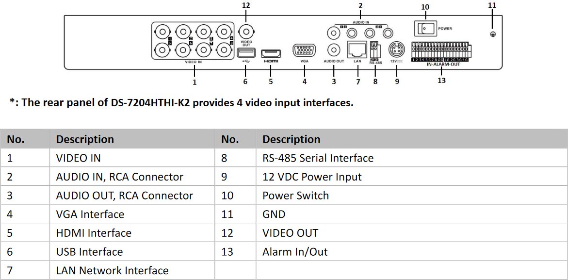 DS-7204HTHI-K2(S) je digitální videorekordér v desktop/rackmount (po zakoupení uší), který umožňuje připojení 4 analogových kamer a 4 IP kamer, maximálně 8 kamer. Maximální možné rozlišení připojených kamer je 8MP (analog i IP).