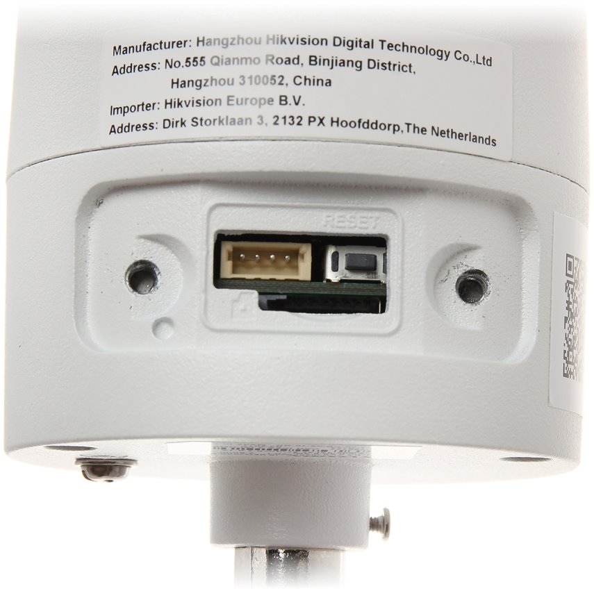 Venkovní kamera Hikvision v provedení Bullet, která disponuje 2 MP snímačem, max. rozlišením 1920 x 1080 px při 30 fps, 120dB WDR, objektivem s ohniskovou vzdáleností 4mm, úhlem záběru 86° a automatickým IR přísvitem pro noční vidění do vzdálenosti až 30m, je vybavena obrazovým snímačem 1/2.8". Kameru je možné napájet prostřednictvím 12V DC adaptéru nebo běžným PoE 802.3af ať už ze switche nebo injektoru. Maximální spotřeba kamery je 7,5 W.