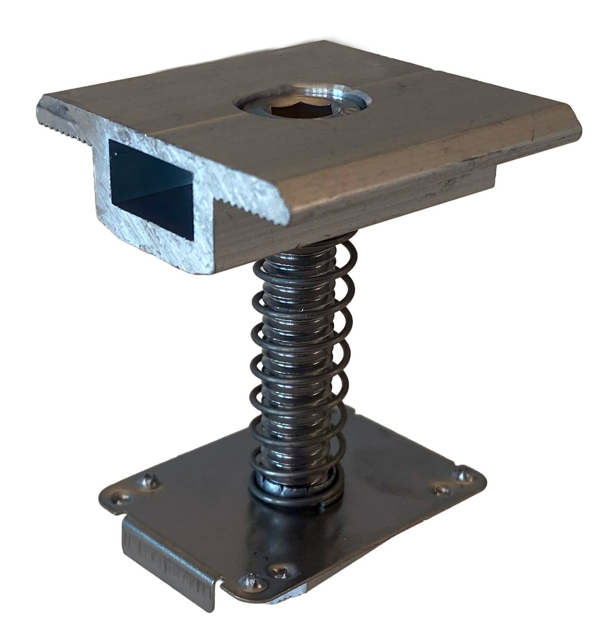 Středové uchycení je vyrobeno z hliníku, má rozměry 40 x 40 x 55 mm (šířka, délka, výška), včetně nerezového šroubu. Pracovní výška 20-40 mm.