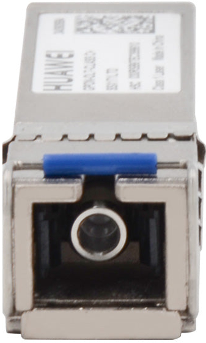 The Huawei OSX002003 GPON SFP module is designed for slots in Huawei OLT units. It is a C+ class module, terminated with an SC connector with UPC polishing, offering a transmission distance of up to 60km and supporting asymmetric data rates of 2.5Gbps download and 1.2Gbps upload. The module's TX power range is from 3 to 7dBm and the RX sensitivity is -32dBm.
