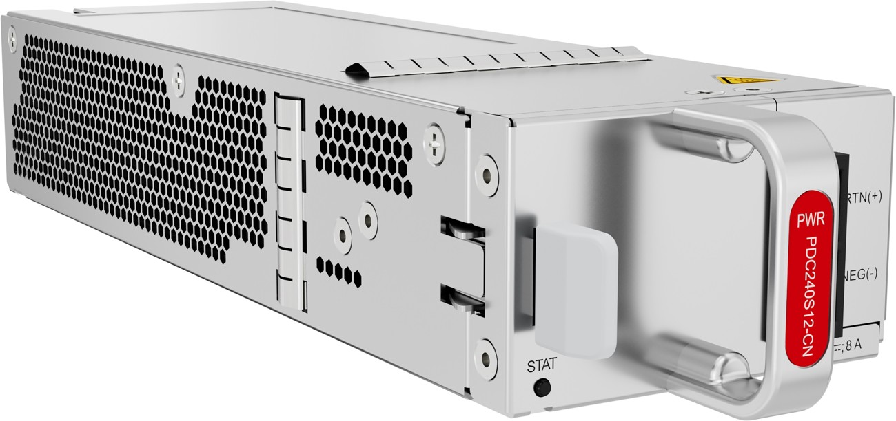 Huawei PDC240S12-CN is a power supply for the Huawei S620-24T16X8Y2CZ switch with an input power voltage of +48V/-48V/-60V DC, featuring hot swap capability. Output power is 240W.
