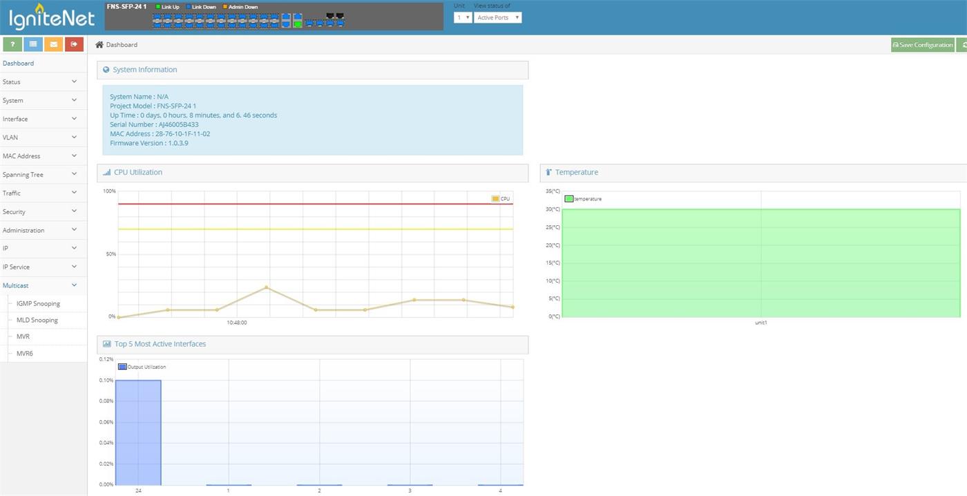 IgniteNet FusionSwitch Fiber switch, 24x SFP, 4x SFP+