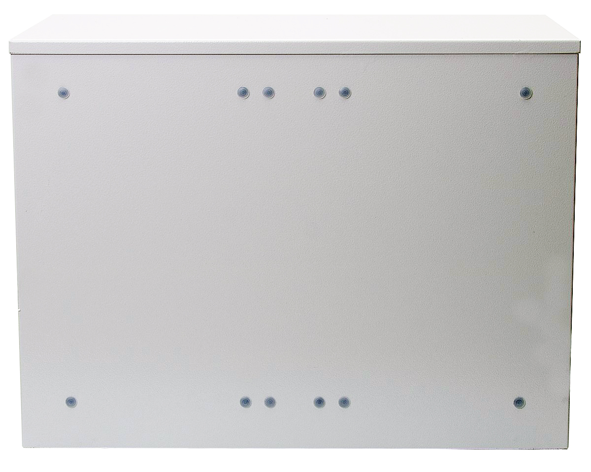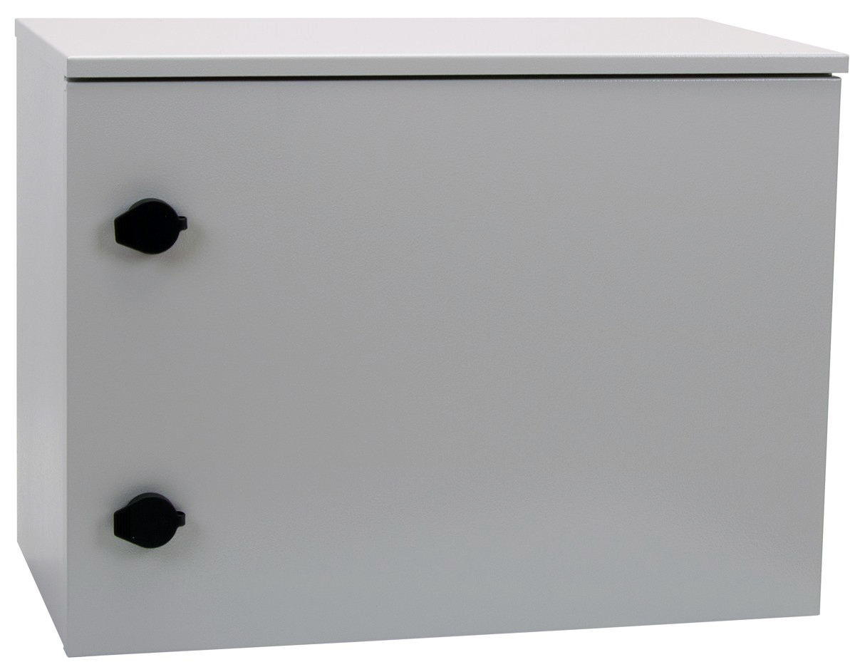 Rozvaděč je vyroben z ocelového plechu o síle 2mm, povrchově upravený práškovou barvou RAL7032 (šedá), dveře jsou opatřeny dvojicí zámků.