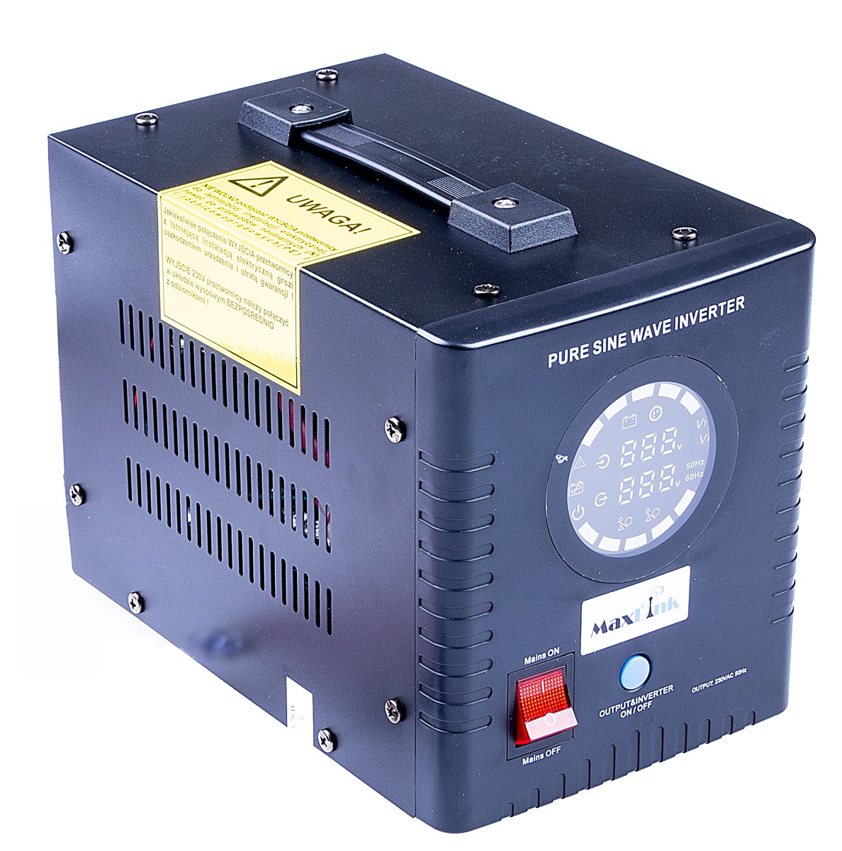 UPS Maxlink is power source with robust construction, flexible use and pure sine output. Thanks to connec external battery it is ideal device also for long-time backup. Length of wires for battery is 0,8m.
