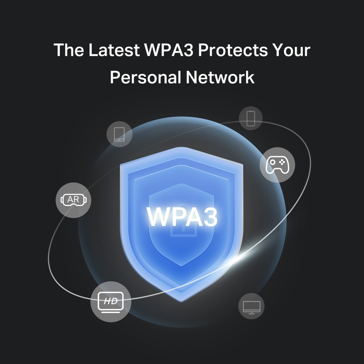 • Improved Security — WPA3, the latest security standard, provides enhanced WiFi protection to secure your devices and personal information from brute-force attacks.