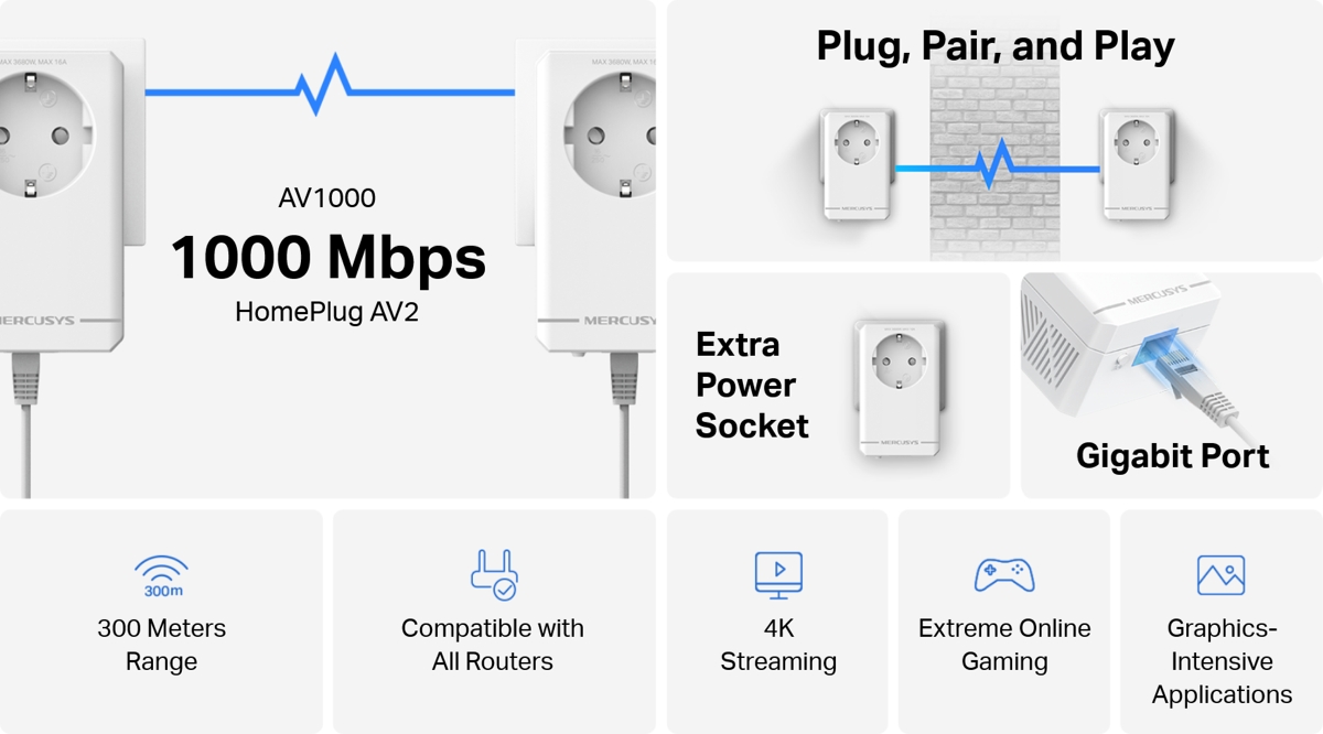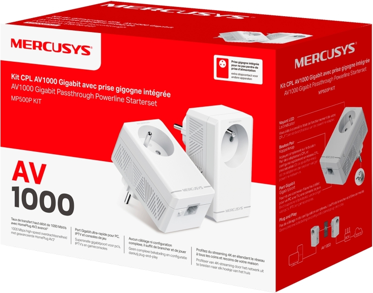 MERCUSYS MP500P KIT - AV1000 Gigabit Passthrough Powerline Starter Kit