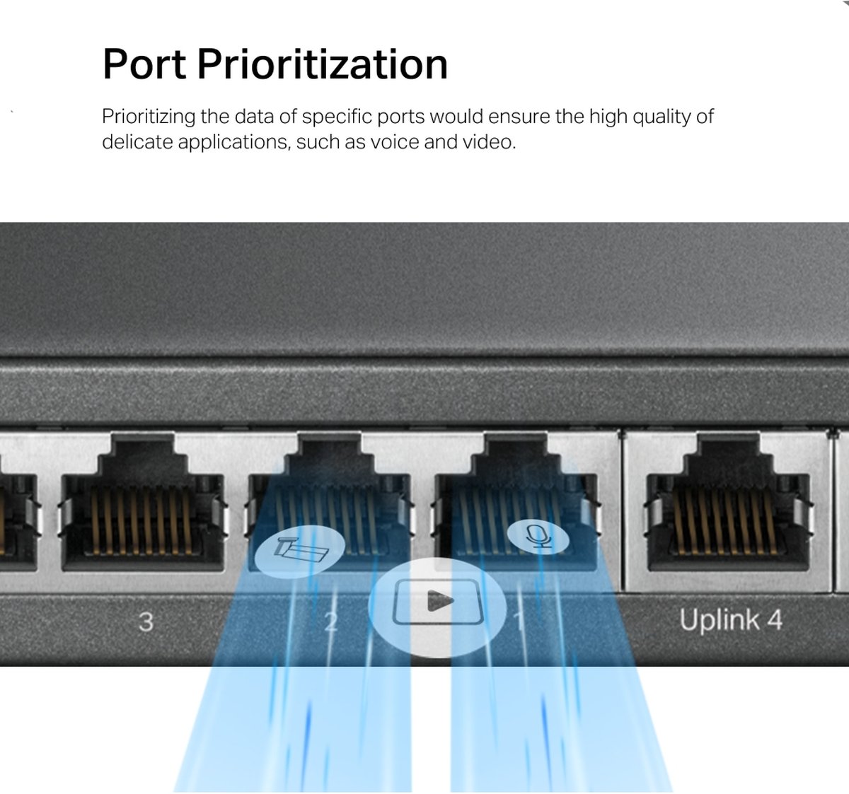 • Priority Mode ensures high priority of ports 1–2 to guarantee the quality of the sensitive applications