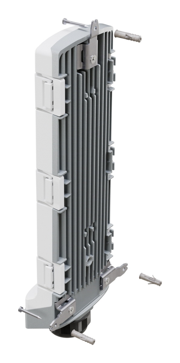 The MikroTik GPERx6 CSS606-1G-2Gi-3S+OUT is a robust outdoor switch designed to withstand harsh weather conditions. It offers an IP66 protection rating and an operating temperature range from - 40 °C to + 70 °C. The unit can be easily mounted on a pole or mast using a hose clamp.