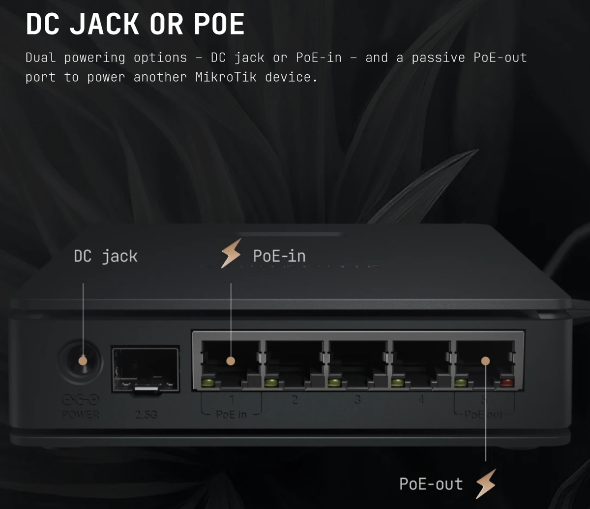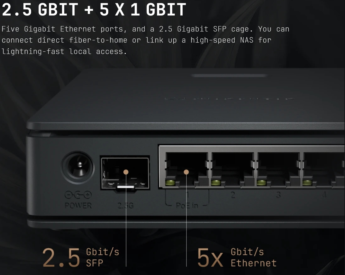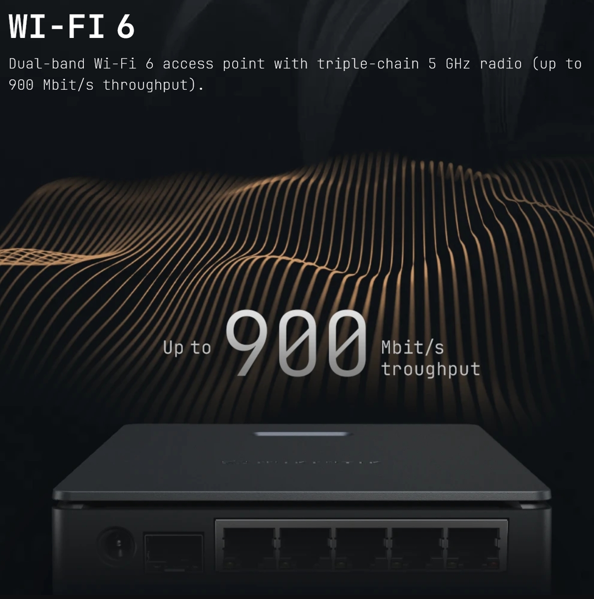 The MikroTik hAP ax S is a high-performance dual-band Wi-Fi 6 routerboard offering real-world throughput of around 800-900Mbps, enabled by its triple-chain 5GHz radio. The device features (5) 1Gbit ports (1x PoE-In, 1x PoE-Out), (1) 2.5G SFP slot and (1) USB port. Thanks to its high performance and low latency, it is also an excellent AP for VR streaming for PCVR headsets.