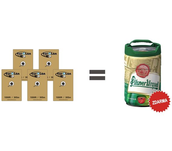 Speciální akce k pěti boxům 305m EuroLan kabelu soudek 5L PilsnerUrquell ZDARMA!