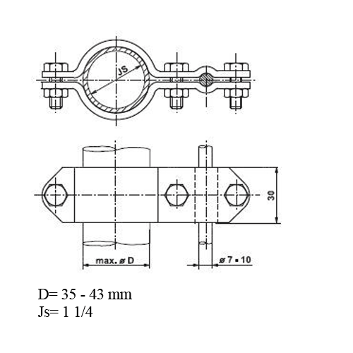 Svorka ST 4 na trubku 35-42mm a hromosvodový drát