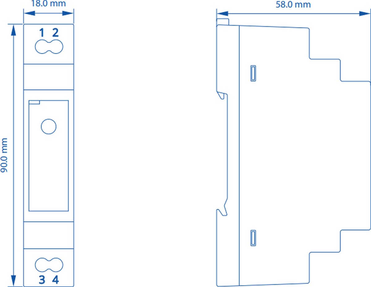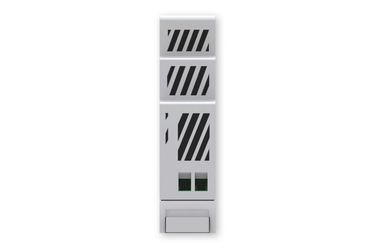 Power supply 24V, 15W, mounted directly on the DIN rail. Input voltage 90-264 VAC.
