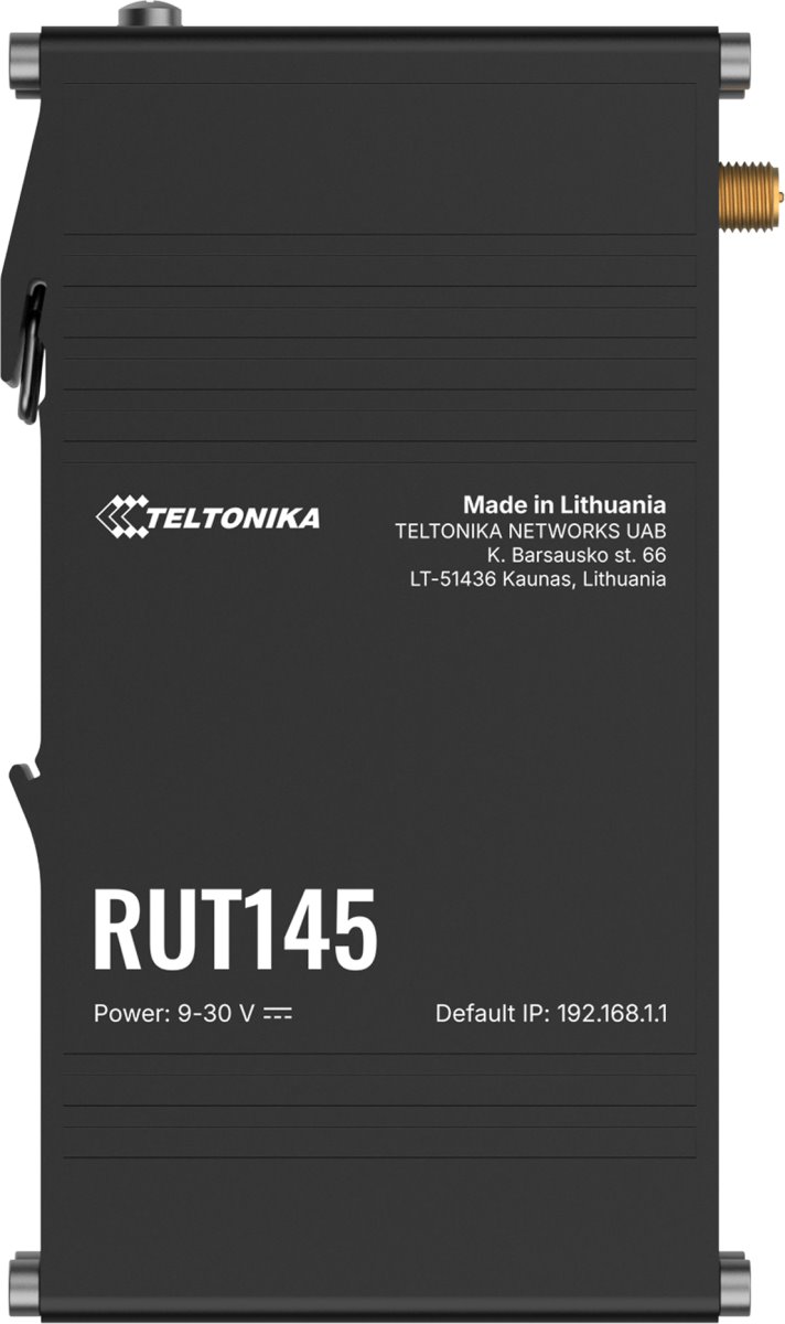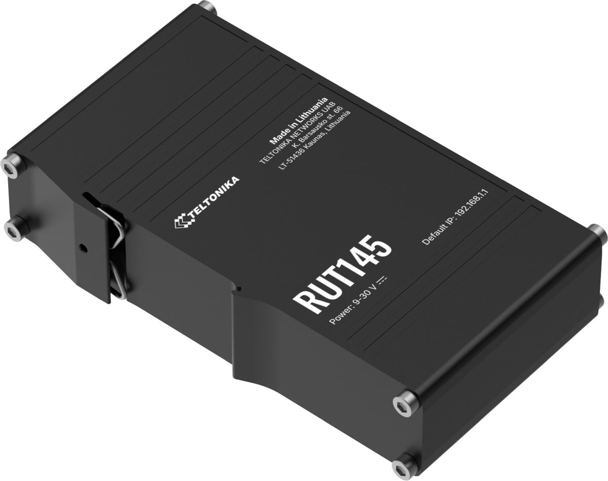 The RUT145 is an industrial router with RS485 communication for manufacturing and automation, specifically designed to bridge the communication gap between RS485 field devices and IP networks. It provides seamless Ethernet/Wi-Fi connectivity combined with a native RS485 multi-drop interface. The device, running on RutOS, offers powerful network security and industrial data collection tools. Its narrow, DIN-rail-mountable design and integration with the RMS platform ensure secure remote and cost-efficient remote management at scale.