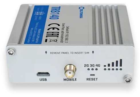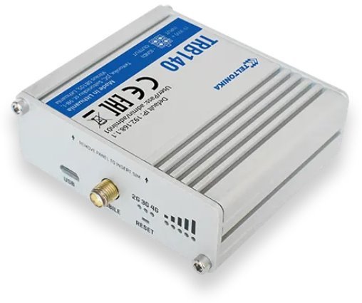 TRB140 LTE Ethernet Gateway is a small, lightweight and energy efficient IoT device equipped with mission-critical LTE capabilities, a RJ45 10/100/1000 Mbps port and a Linux environment offering a high degree of customization, designed to do IoT projects with ease.