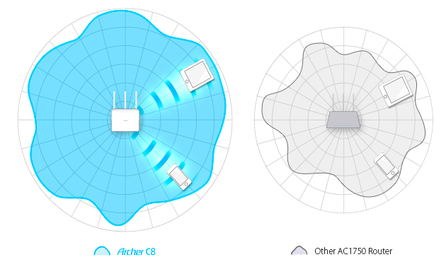 Beamforming concentrates the Wi-Fi signal towards your Wi-Fi devices, focusing the data transmission to where you need it the most. Superior Wi-Fi bandwidth utilization increases Wi-Fi range, delivering highly targeted and efficient Wi-Fi connections.