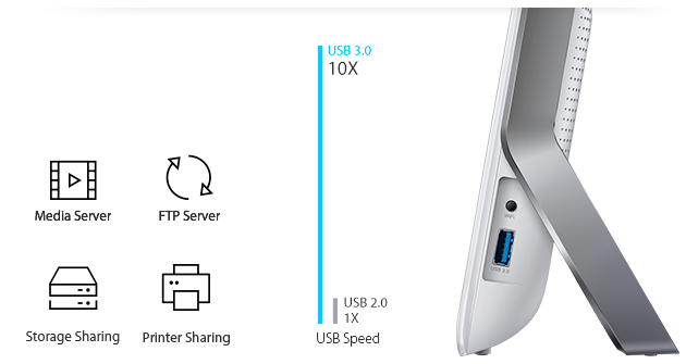 With a USB 3.0 port and a USB 2.0 port, it’s easy to share local printers, files and media within the network and between devices. Utilize the FTP server to access files stored on the router while away home. Take advantage of USB 3.0 with 10x faster speed than traditional USB 2.0.