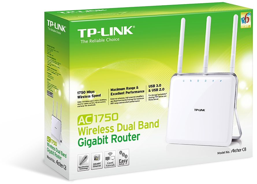 Archer C8 comes with the next generation 11ac Wi-Fi standard, offering total data transfer speeds achieving up to 1.75Gbps, with 1.3Gbps over the clearer 5GHz channel, and 450Mbps over the 2.4GHz Channel. Ultra-fast 800MHz dual-core CPU function as a great ‘heart’ for fast, stable and responsive performance with Wi-Fi, Ethernet and USB devices. Whole home coverage with excellent Gigabit Wi-Fi are ideal for bandwidth intensive applications such as HD video streaming and online gaming, allowing you to enjoy a super-fast connected home.