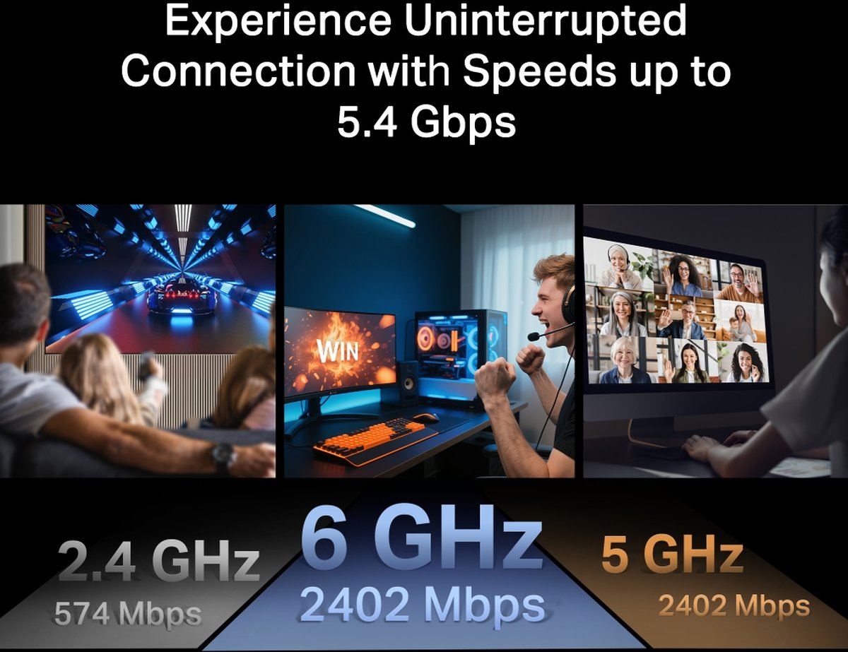 2.4 GHz, 5 GHz, Bluetooth, 6 GHz