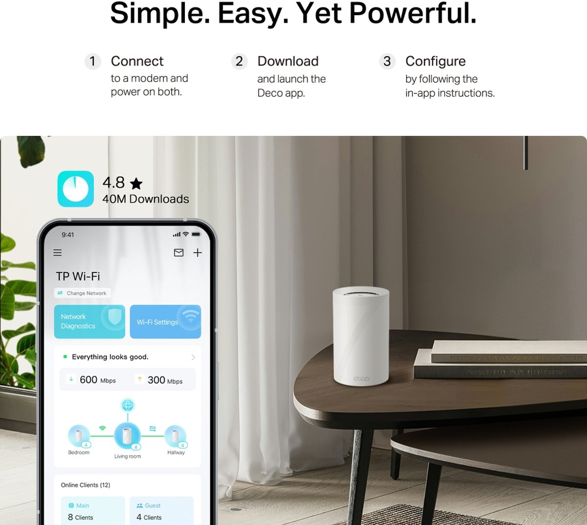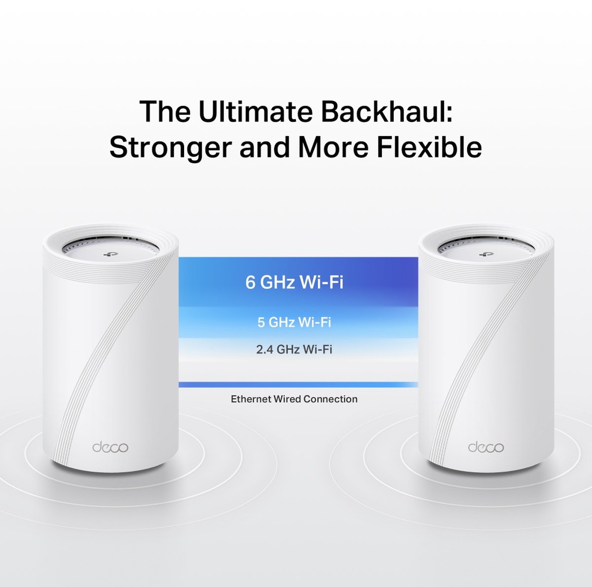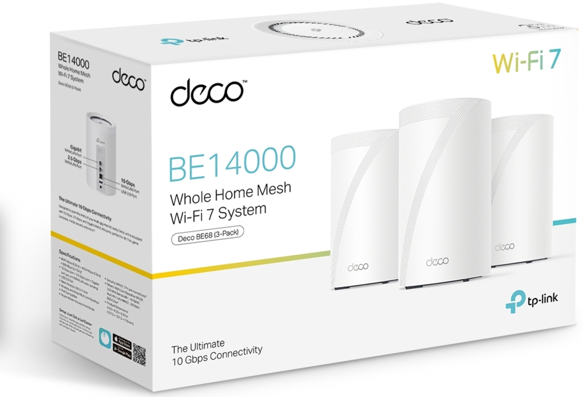 TP-Link Deco BE68 (3-pack) is the easiest way to ensure a strong Wi-Fi signal in every corner of your home. Wireless connectivity and the option to connect all units either via cable or wirelessly provide even higher network speeds and truly seamless coverage. Want more coverage? Just add another Deco unit.