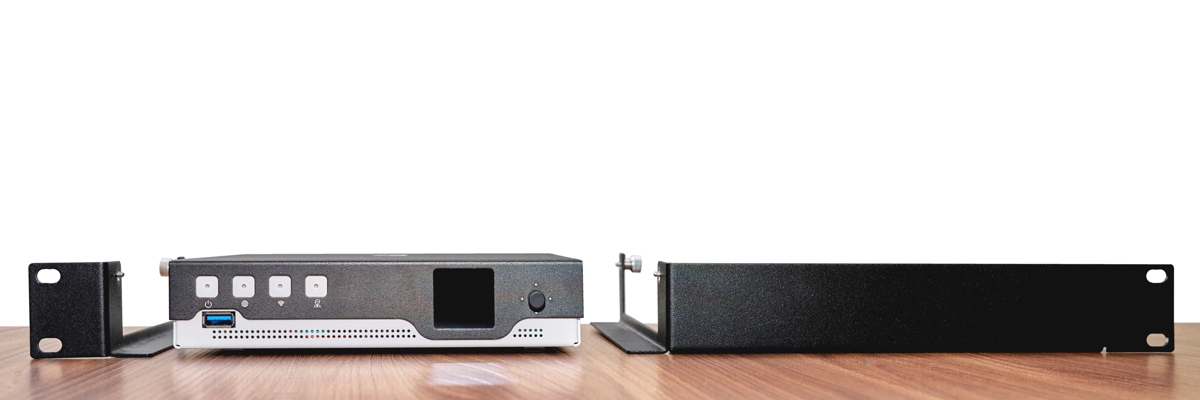 Router is ready for rack installation. Optional accessory includes a bracket with captive screws for easier mounting.