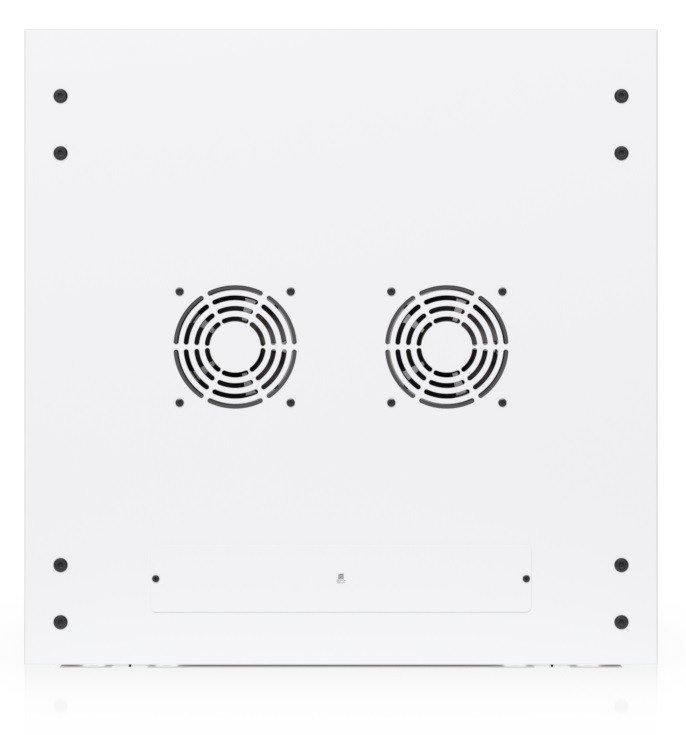 Pro zajištění efektivního chlazení aktivních prvků je rozvaděč osazen dvojicí ventilátorů, celková hlučnost je pod hranicí 50dB(A). V případě potřeby zálohovat aktivní prvky např. bateriemi jistě potěší nadstandardní nosnost, která činí 80kg. Konstrukce je vyvedena v elegantní bílé barvě s povrchem opatřeným práškovou barvou, na bočnicích nechybí logo Ubiquiti. Kabelové vstupy kyté záslepkami jsou připravené na dolní, horní i zadní straně rozvaděče.
