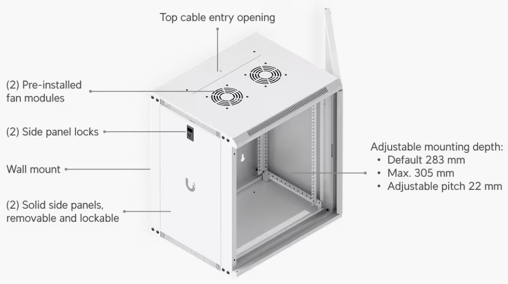 Ubiquiti 12U Rack Cabinet, Wall mount, 600mm, perforated door