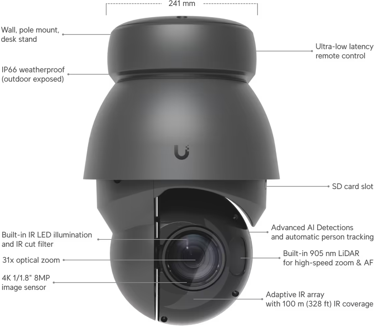 Ubiquiti AI PTZ Precision - 8MP PTZ IP Camera, Black