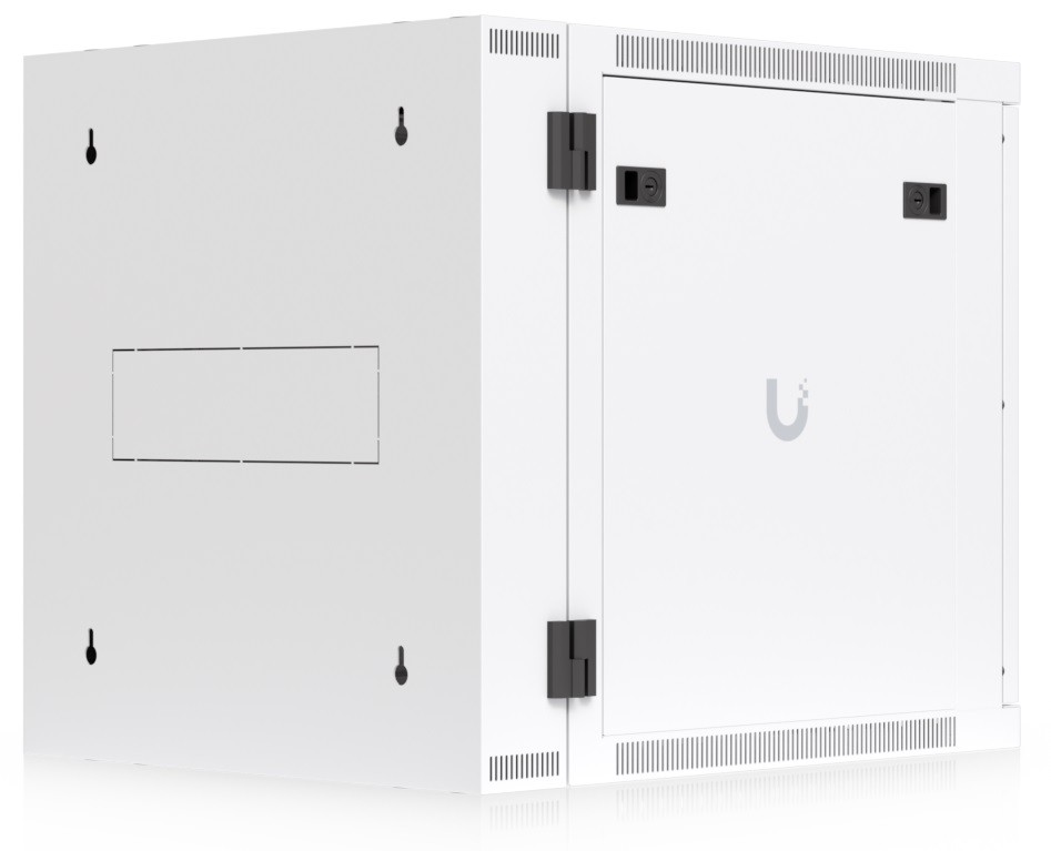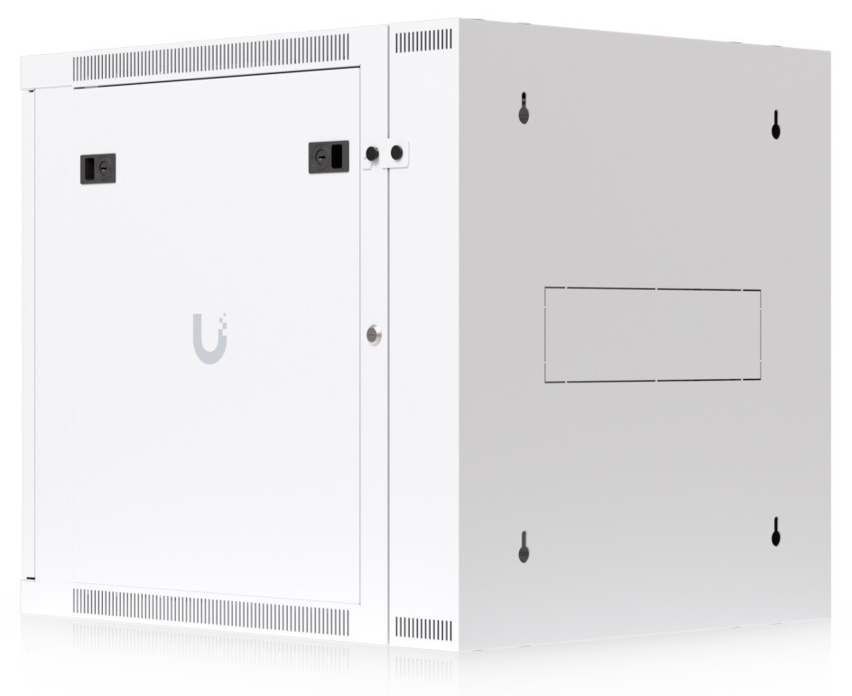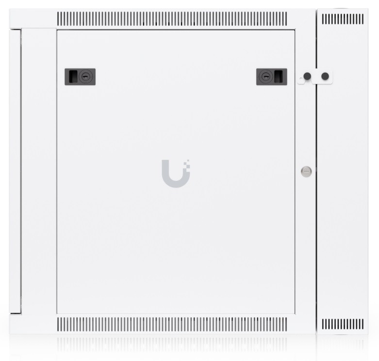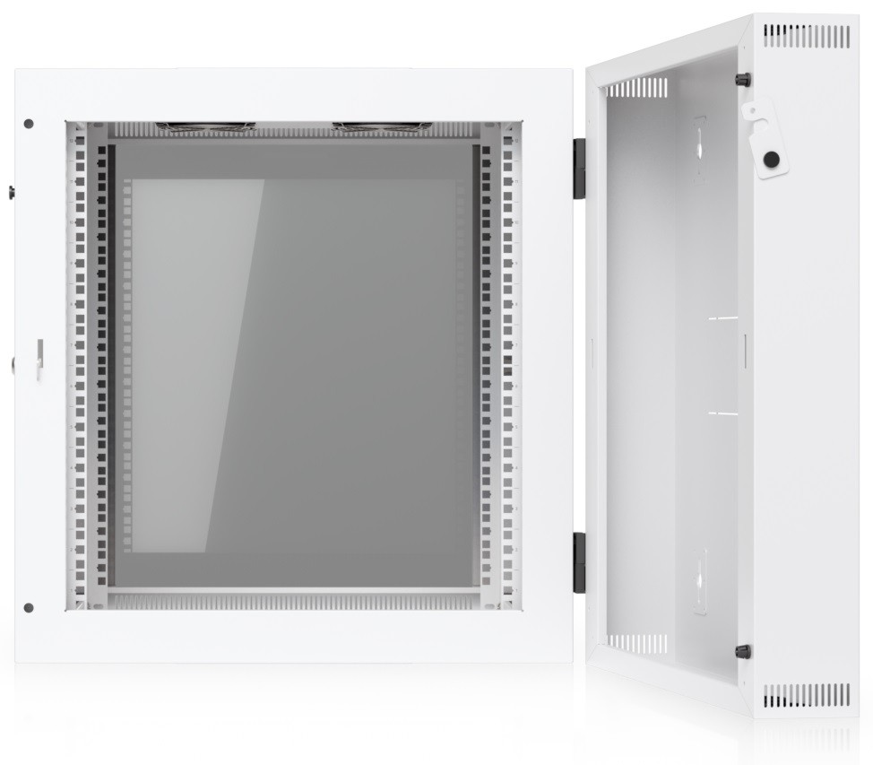 Ubiquiti UACC-Rack-12U-Wall-SW-G is a two-section 19" wall-mounted rack in 12U size, delivered fully assembled and equipped with a glass front door panel, which — just like the removable side panels — can be locked to prevent unauthorized access. The door is factory-set to a left-hand orientation with the option to reverse it. With a depth of 700 mm, the rack allows the installation of networking devices up to 559 mm deep.