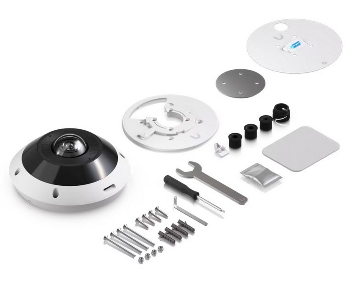Ubiquiti G6 Pro 360 is an outdoor panoramic IP camera from the UniFi Protect series. It is equipped with a 12MP sensor with a resolution of 3504 x 3504 px at 24 fps, a fisheye lens with a 360° field of view, and an intelligent IR illuminator with a range of up to 15 m and 4 controllable zones. The camera is fitted with a 10/100 Mbps Ethernet port, which also serves for power supply via PoE+ 802.3at or passive PoE in the range of 37–57V DC. The maximum power consumption of the camera is 7.14 W. The camera also includes microphons, speaker for two-way communication and a memory card slot.