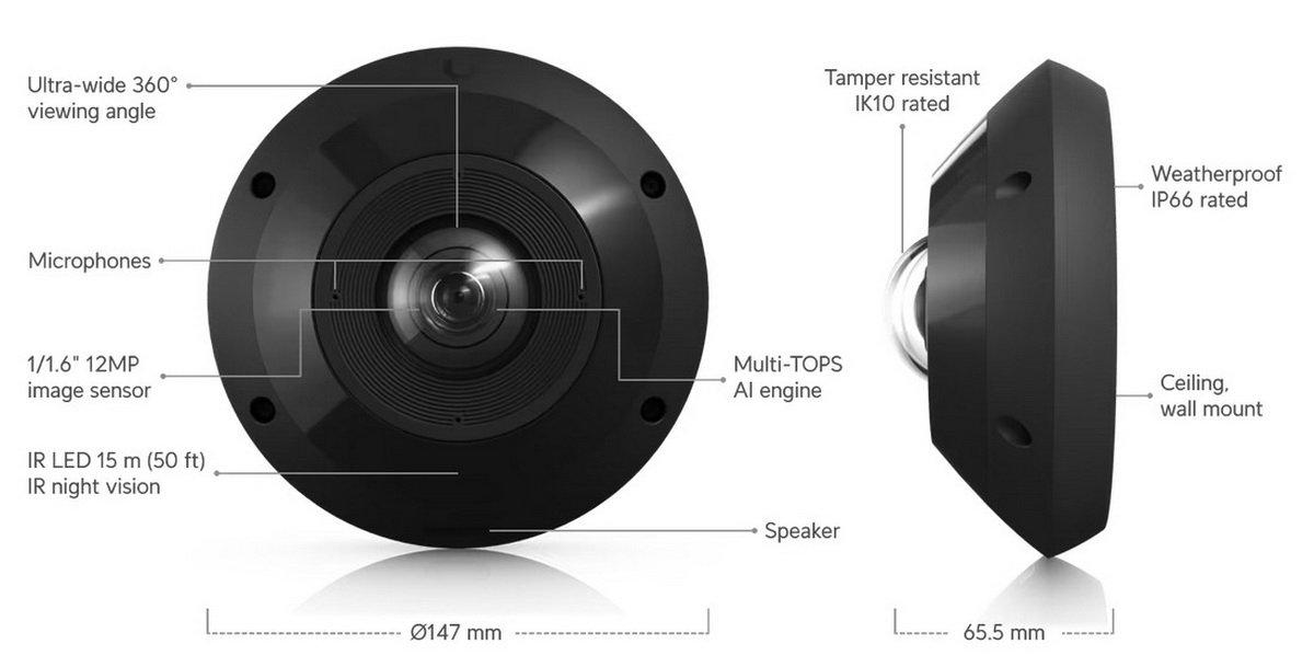 Ubiquiti G6 Pro 360, black, IP camera, outdoor, 12MP