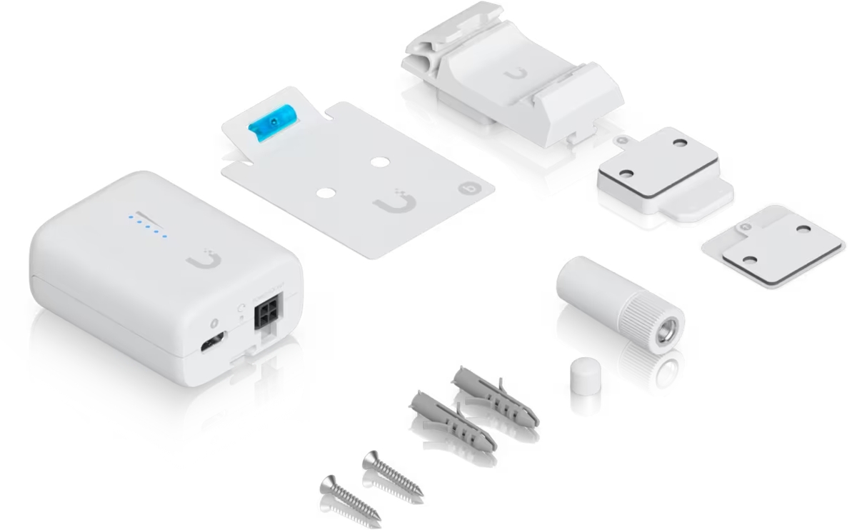 The Ubiquiti Device Bridge IoT is a compact wireless Wi-Fi 4 bridge for IoT devices featuring (1) 10/100Mbps port, an internal antenna and (1) RP-SMA connector for an external antenna. It connects any ethernet device to a 2.4GHz UniFi Wi-Fi network using the Auto-Link function. The device’s maximum power consumption is 2.3W.