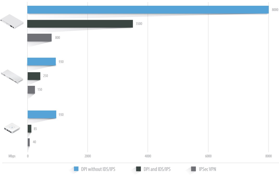 UniFi Dream Machine Pro offers significantly higher performance than previous generations of UniFi Security Gateway. The device is equipped with a 4-core ARM Cortex-A57 CPU clocked at 1.7 GHz, 4 GB RAM, and an internal 16GB eMMC storage. With such a device, the iPerf3 throughput test showed a worthy 3.5Gbps.