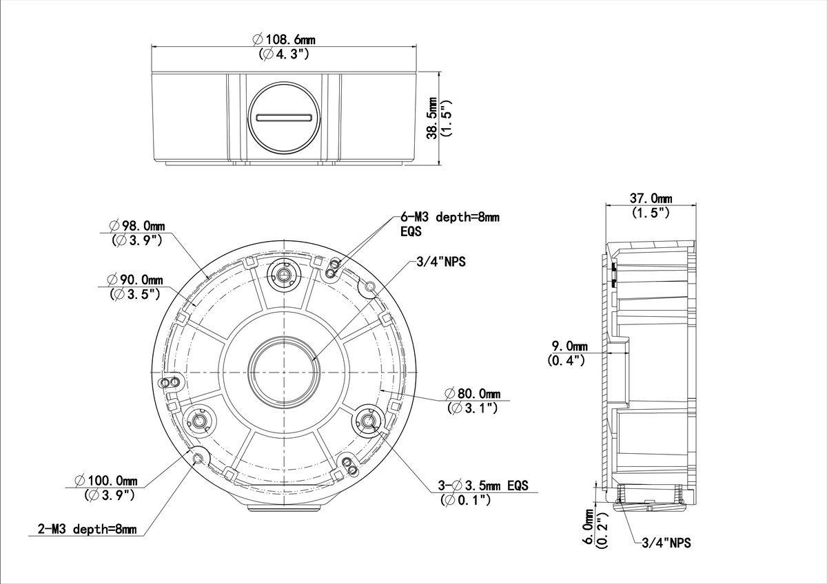 UNV Fixed Dome Junction Box - TR-JB03-G-IN for dome IPC32x, black