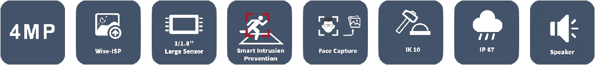 Face capture, ColorHunter, Smart intrusion prevention, Vehicle detection, People counting, Wise-ISP
