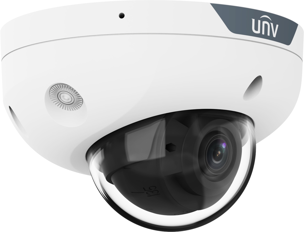 UNV IP mini dome hybrid kamera IPC314SB-ADF28KMC-DL-I1 disponuje 4MP snímačem (2688 x 1520 px) při 30fps, fixním 2.8mm (101,1°) objektivem, kombinovaným IR/bílé světlo přísvitem pro noční vidění na vzdálenost až 30m + blikačem (stroboskop a zvukový alarm), krytím IP67 a IK10, technologií 130dB True WDR, vestavěnými mikrofony a reproduktorem a audio i alarmovými vstupy/výstupy. Do sítě lze kameru připojit pomocí 10/100Mbps LAN s podporou napájení přes PoE s maximální spotřebou 8,5W.