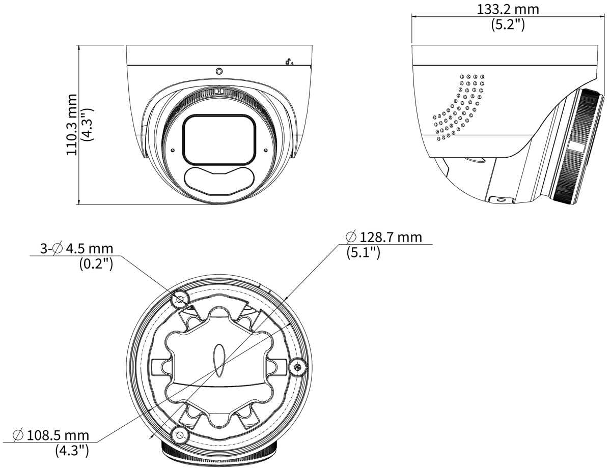 UNV IP turret hybrid kamera IPC3638SE-ADF40KMC-WP-I1 disponuje F1.0 8MP snímačem (3840 x 2160 px) při 30fps, fixním 4mm (94,8°) objektivem, kombinovaným IR/bílé světlo přísvitem pro noční vidění na vzdálenost až 30m + blikačem (stroboskop a zvukový alarm), krytím IP67 a IK10, antikorozní ochranou, technologií 130dB True WDR, vestavěnými mikrofony a reproduktorem a audio i alarmovými vstupy/výstupy. Do sítě lze kameru připojit pomocí 10/100Mbps LAN s podporou napájení přes PoE s maximální spotřebou 6,5W.