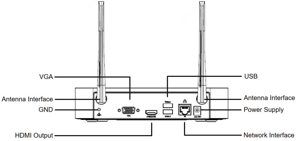 Medium NVR device for 4 IP cameras and 1 HDD up to 10 TB. Recorder is equipped with one 10/100Mbps Ethernet port for network connection and WiFi for wireless transmission data with the cameras, which are included in the package. Maximum consumption of the device is less than 9 W (without connected HDD). The device is powered by 12V DC adapter which is also included.